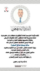 وبهذا المصاب الجلل، نتقدم إلى أسرة الفقيد ومحبيه