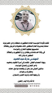 وبهذا المصاب الجلل، نتقدم إلى أسرة الفقيد ومحبيه