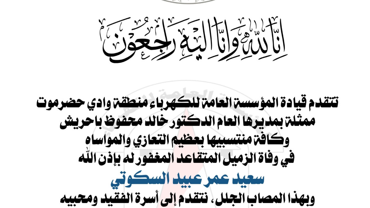 ⚫تعزية في وفاة الزميل المتقاعد سعيد السكوتي